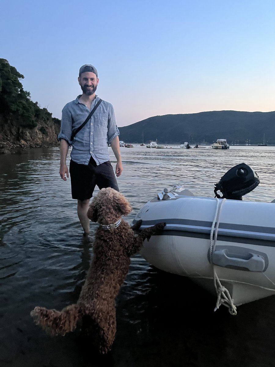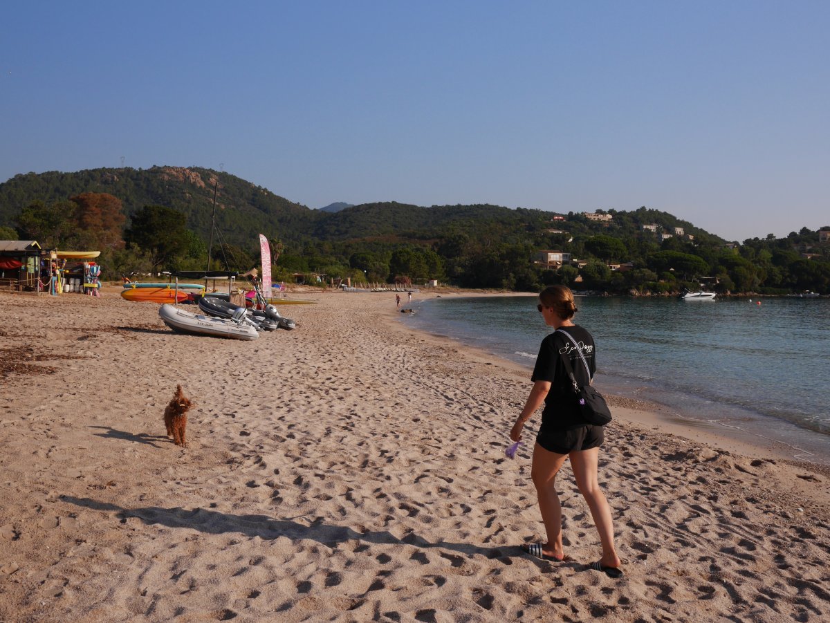 Nach knapp 11 Stunden war’s geschafft. Schneller als gedacht und wir konnten am Ende sogar noch ein Stück Segeln, dank einer vorbeiziehender Wolke und deren Winde, die uns den ersten Regen seit Wochen bescherte. Juna wurde gegen Ende etwas unruhig – aufs Kunstrasen-Klo wollte sie nicht, dafür übergab sie sich lieber im Bad, nachdem sie zu schnell ein Rinderstängeli genascht hatte. Kein Drama: Am Strand tobte sie danach fröhlich herum. Nach einem feinen Znacht fielen wir alle hundemüde, aber glücklich ins Bett.