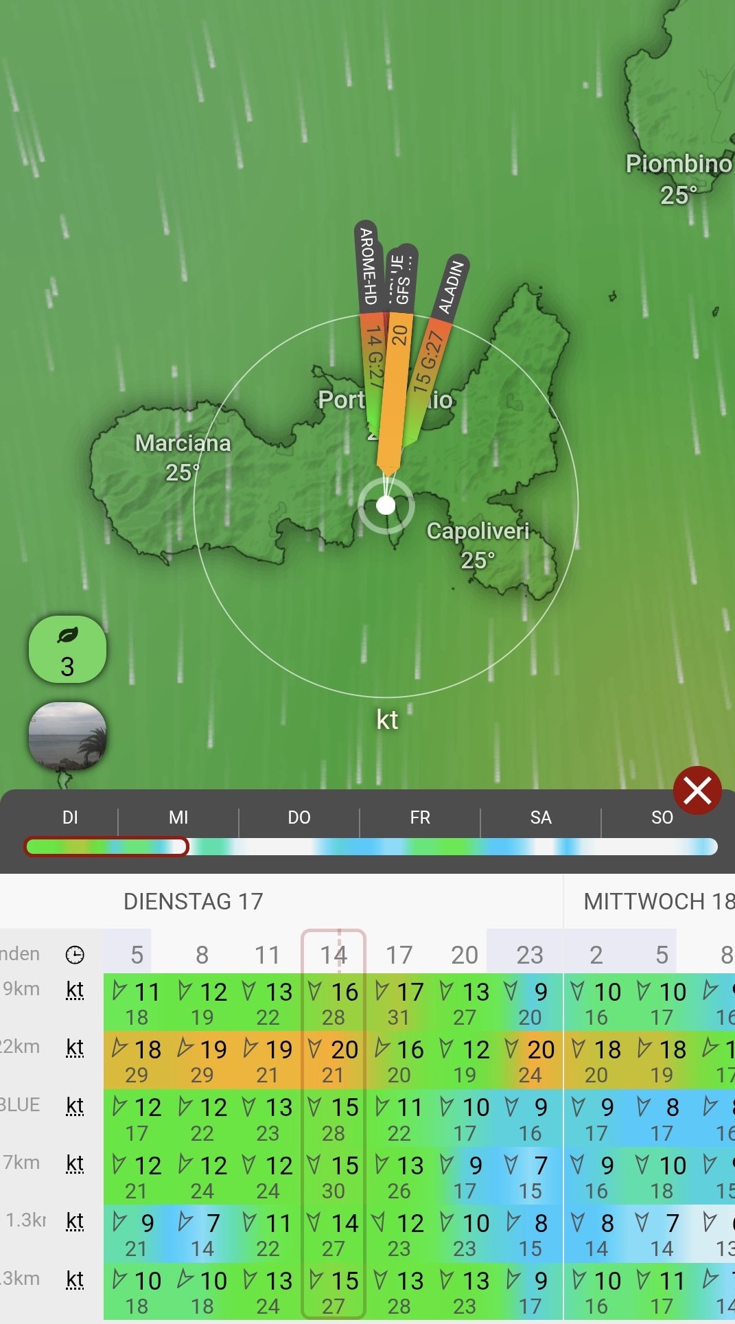Wir blieben mehrere Tage in der Bucht von Lacona, weil starke Winde von bis zu 30 Knoten angesagt waren. Zum Glück hatten wir mittlerweile Vertrauen in unseren Anker – so konnten wir trotz Schwell etwas beruhigter schlafen. Doch eines Nachts: WUMS! Ein Knall riss uns aus dem Schlaf. Der Ankerball (diesen hängt man vorne beim Boot auf, um andere Segler tagsüber zu informieren, dass man hier ankert. In der Nacht schaltet man das Ankerlicht an) war heruntergefallen! Herzklopfen pur, aber alles halb so wild – nach einem kurzen Schock konnten wir weiterschlafen.