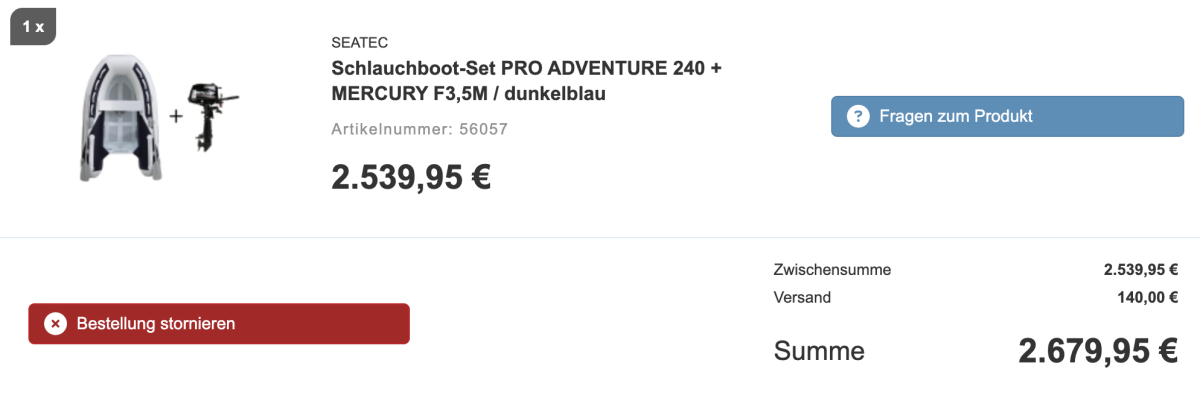 Es stellte sich heraus, dass das Modell, das wir ursprünglich bestellen wollten, nicht mehr an Lager war. Noch kurz zuvor war es auf der Website als «verfügbar» gekennzeichnet. Es scheint wirklich verflucht zu sein, mit diesem Dinghy...