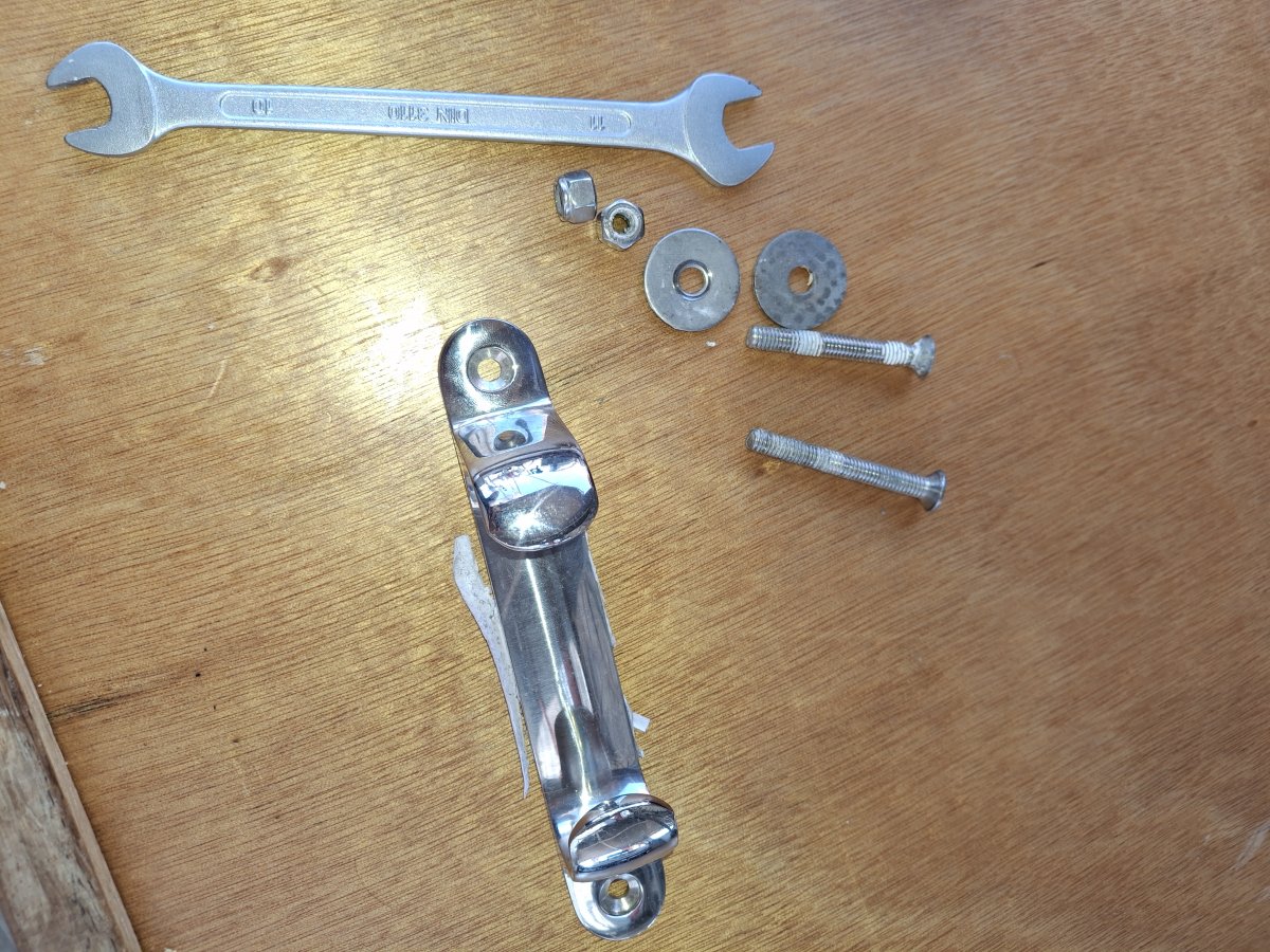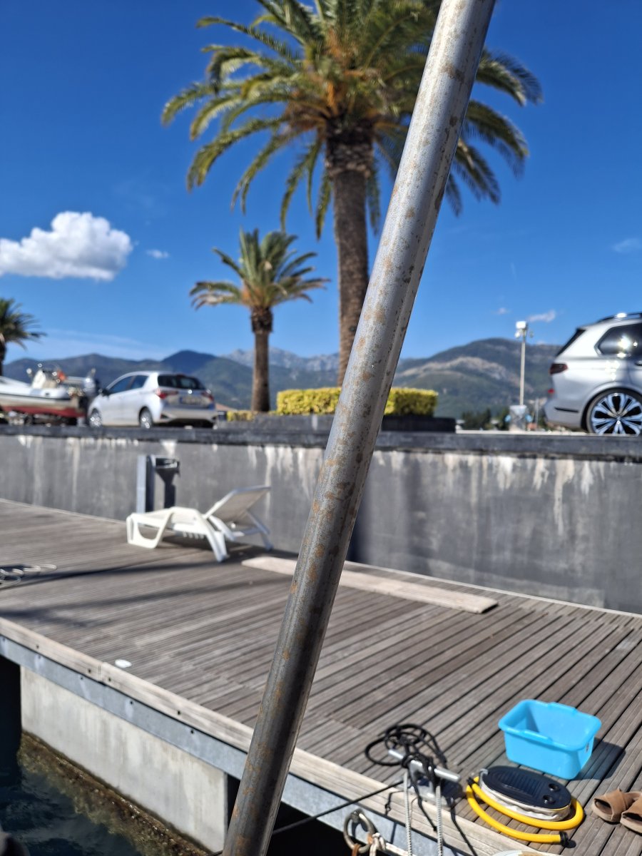 Das Mittel, das wir vom Vorbesitzer übernommen haben, wirkte zuverlässig – Chromstahlreiniger aus dem Supermarkt. Eine günstige Alternative zu den "Spezialreinigern" aus dem Bootsladen.