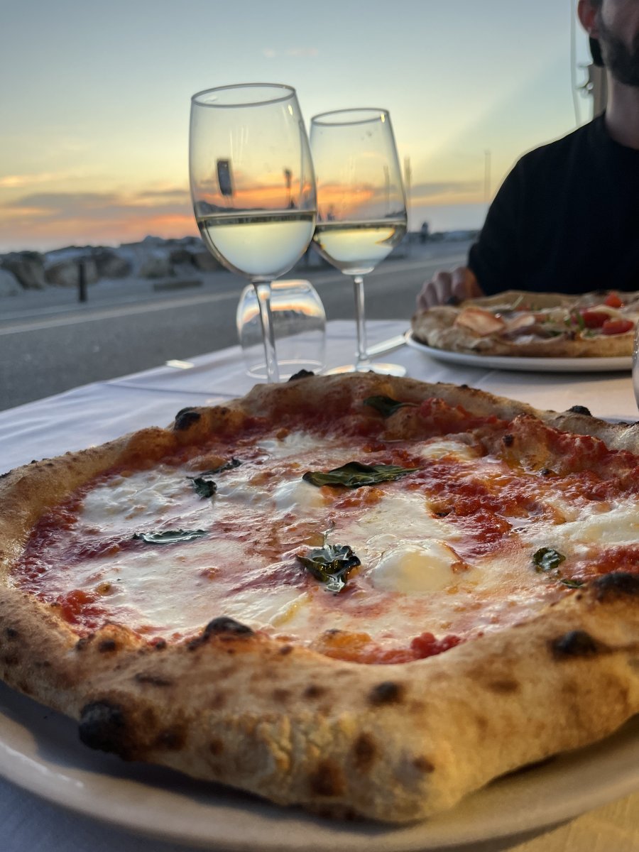 Lust zu Kochen hatte an diesem Abend keiner von uns. Wir spazierten am Strand entlang und fanden ein grossartiges Restaurant: The Cliff bei der Marina di Pisa – günstige, leckere lokale Küche mit fantastischem Sonnenuntergangsblick. Ein echter Tipp, wenn man dem Stadttrubel entkommen will.