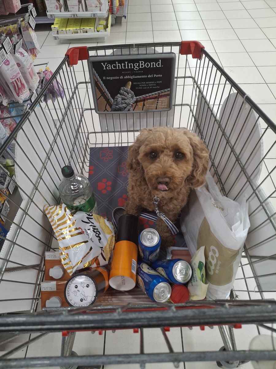 Wir mussten den Platz selbst suchen – aber dank der Übersichtskarte war das kein Problem. Es war wenig Wind und klappte problemlos. Im Hafen gab’s sogar einen kleinen Waschsalon – gleich genutzt. Wir wollten uns im nahegelegen Coop ein Brot für's Znacht holen (es blieb wie immer nicht nur beim Brot..). Da aussen nichts stand, dass Hunde verboten sind, nahmen wir Juna mit rein. Eine nette Dame informierte uns, dass man den Hund nur im Wagen mitnehmen kann und holte uns sogar auch gleich einen. Wir sind immer wieder erstaunt über die Freundlichkeit, die hier herrscht. Es gibt spezielle Hunde-Wägeli bei denen ist der Boden bereits mit einer Matte ausgelegt, sodass man keine Decke braucht und der Hund bequem auf dem Gitter stehen oder sitzen kann.