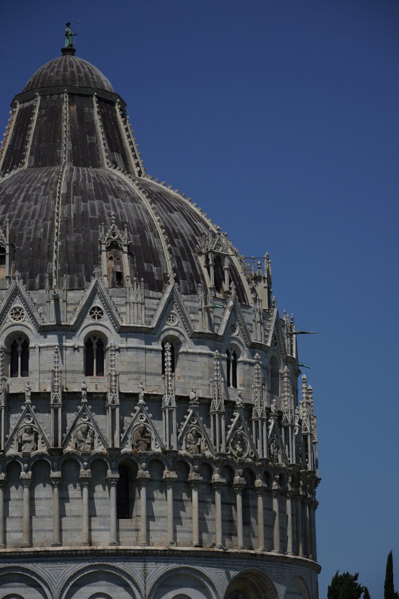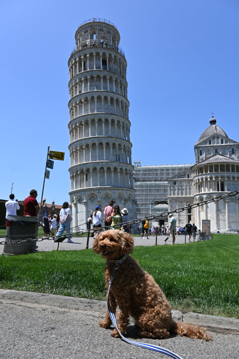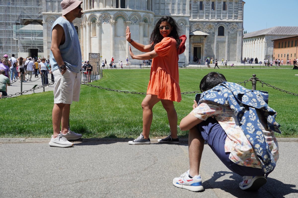 In Pisa angekommen, holten wir uns einen Snack und machten uns auf den Weg zum – wie sollte es anders sein – schiefen Turm. Sehr touristisch, aber herrlich zu sehen, wie sich die Leute dort für Fotos in Pose werfen. Das könnten wir den ganzen Tag beobachten. Juna hat wie immer super mitgemacht.