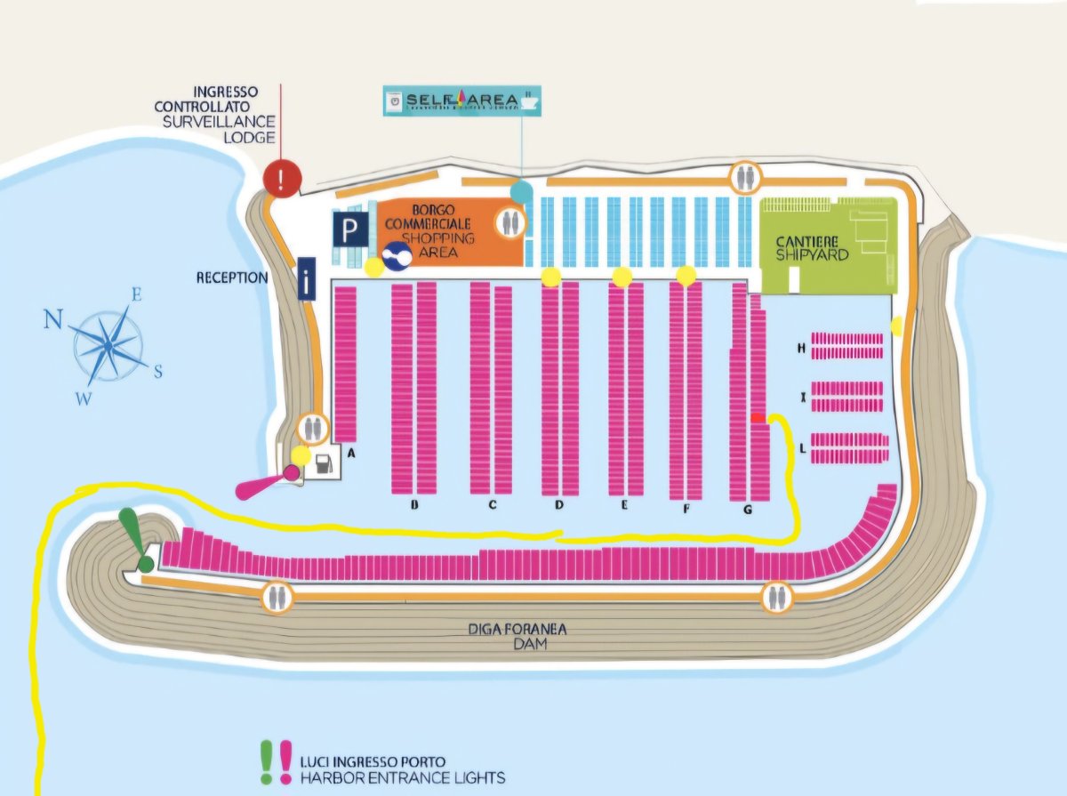 Marina: "Scialla, you can enter now. Your berth is Golf (G) five-three. We’ll send help for mooring."