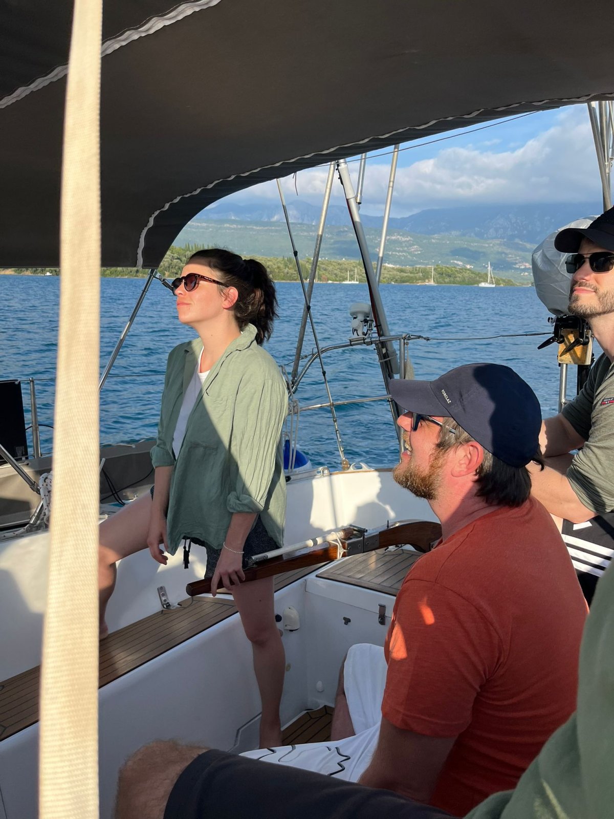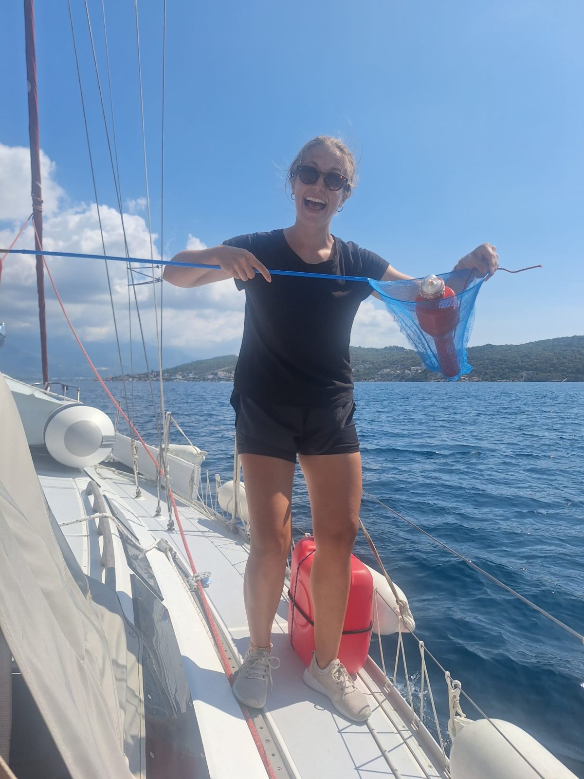 Mitten in der Fahrt fiel plötzlich unsere Seenotleuchte ins Wasser – perfekte Gelegenheit für ein „Mensch über Bord“-Manöver. Fock rein, Motor an, gegen den Wind anfahren – beim dritten Versuch gelang es, die schwere Lampe mit dem Netz zu bergen. Danach gönnten wir uns eine Pause bei der Blumeninsel, sprangen ins Wasser und segelten mit stolzen 6 Knoten zurück in den Hafen. Abends liessen wir die Tage, nach einem üppigen Restaurantbesuch, meist im Apartment bei Quizzen und langen Gesprächen ausklingen.