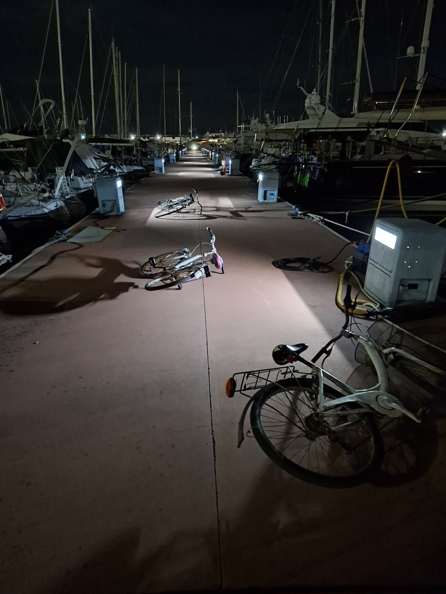 Schnell wurde klar: Es wurde gestohlen. Genauso wie die beiden Klappvelos unseres Stegnachbarn – einer Superyacht. Stattdessen lagen drei alte Schrottfahrräder da – als wäre es ein Tauschgeschäft gewesen (aber halt ohne unser Einverständnis).