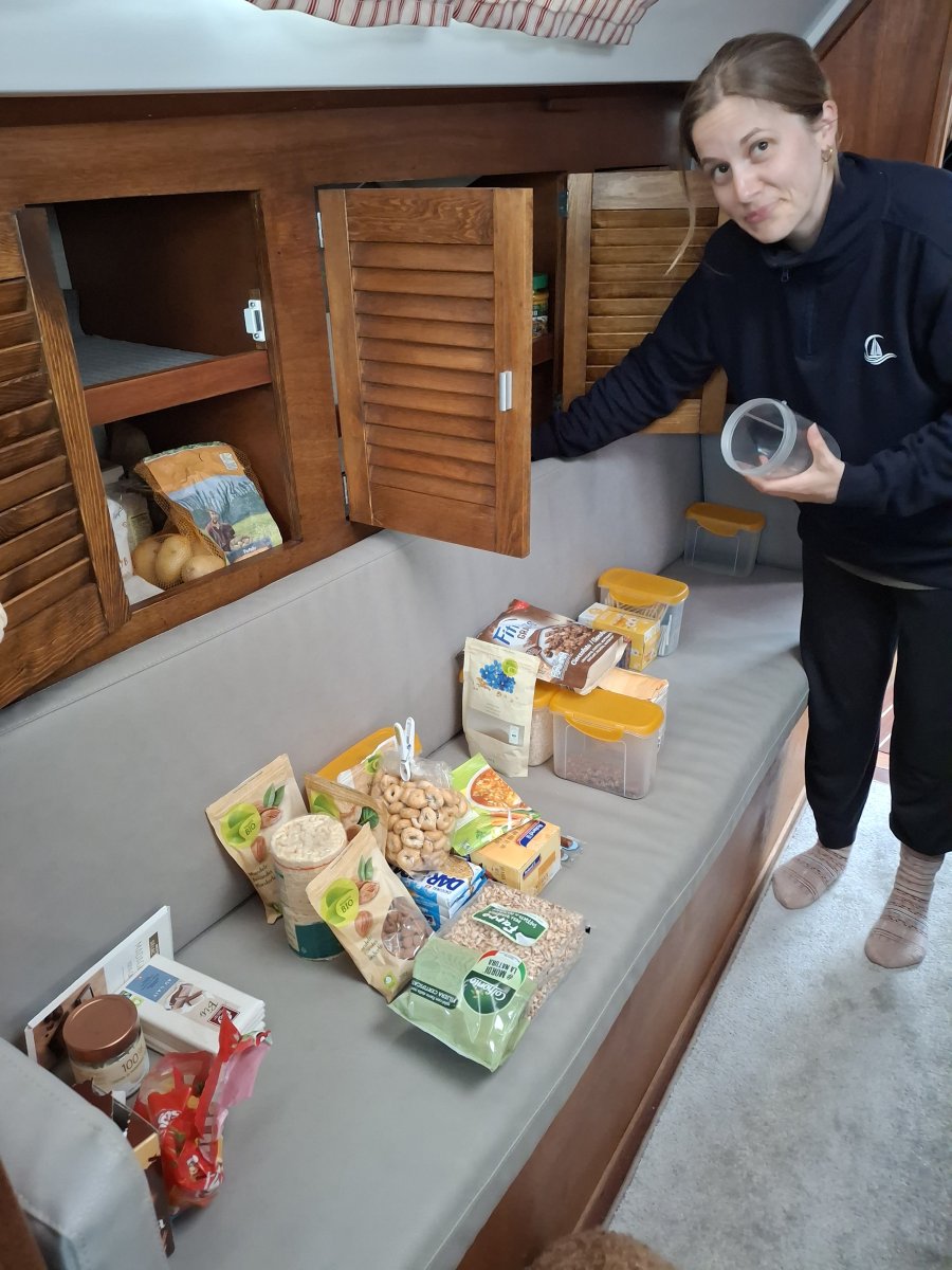 Dann kam der Regen – und zwar durchgehend. Einige Bootsprojekte mussten daher in die Warteschleife. Aber drinnen gab es genug zu tun. Wir haben zum Beispiel die Lebensmittelschränke komplett ausgeräumt und neu organisiert. Jetzt haben wir endlich genug Platz für eine anständige Vorratskammer. Wenn wir erstmal unterwegs sind, wäre es super, nur einmal im Monat gross einkaufen zu müssen – und dazwischen nur frisches Gemüse etc. zu besorgen. Challenge accepted!