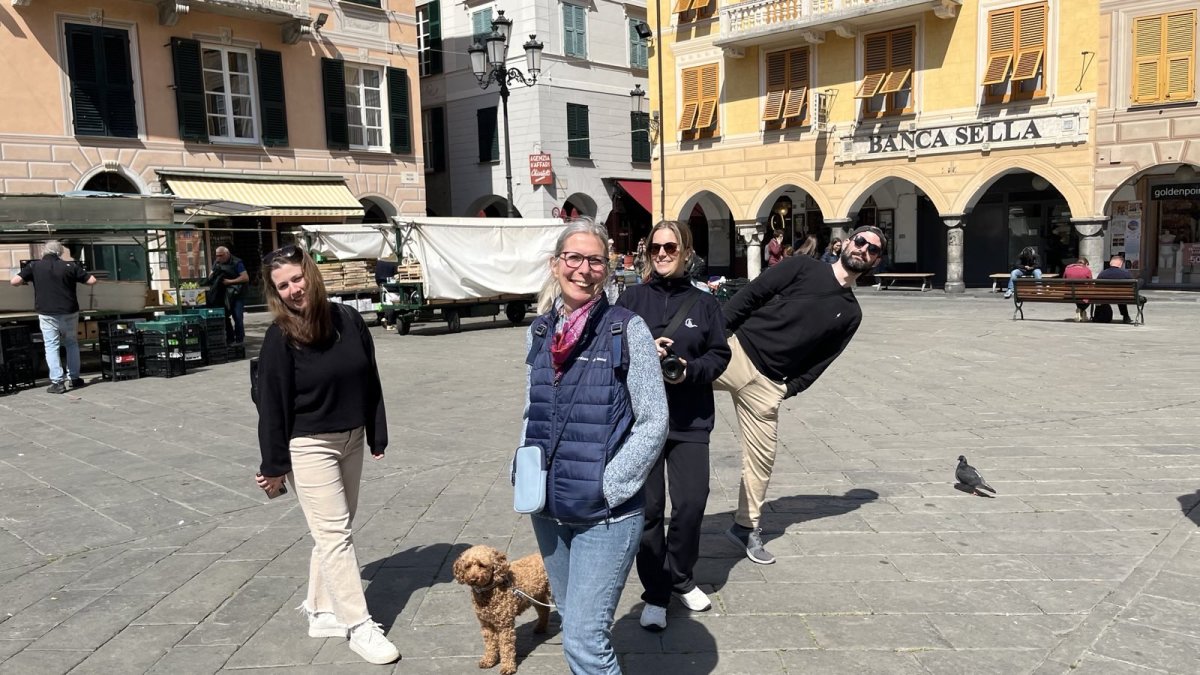 Zum Glück waren wir vor ein paar Tagen im Nachbardorf Chiavari zufällig an einer Tierarztpraxis vorbeigelaufen. Wir riefen an – und tatsächlich, sie hatten bis 19:30 Uhr geöffnet. Also schnappte sich Janine das Klappvelo und den Hunderucksack mit Juna drin und radelte die fünf Minuten zur Praxis. Wir kamen sofort dran, und der Tierarzt war super freundlich – und sprach auch noch sehr gutes Englisch.