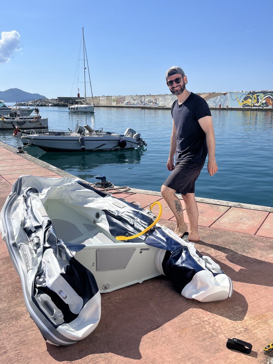 Dass wir ein Boot gefunden haben, das so nah bei der Schweiz lag, war ein echter Glücksfall. So konnten wir unsere grossen und schweren Materialien bereits im Vorhinein mit dem Auto transportieren. Als wir dann definitiv aufs Boot zogen, reisten wir nur noch mit "leichtem" Gepäck und einem One-Way-Ticket im Zug nach Lavagna. In der zweiten Woche nach unserer Ankunft besuchte uns Jans Familie in unserem neuen Zuhause. So hatten wir zum ersten Mal die Gelegenheit, jemandem unsere schwimmende Unterkunft für die nächsten Monate zu zeigen.