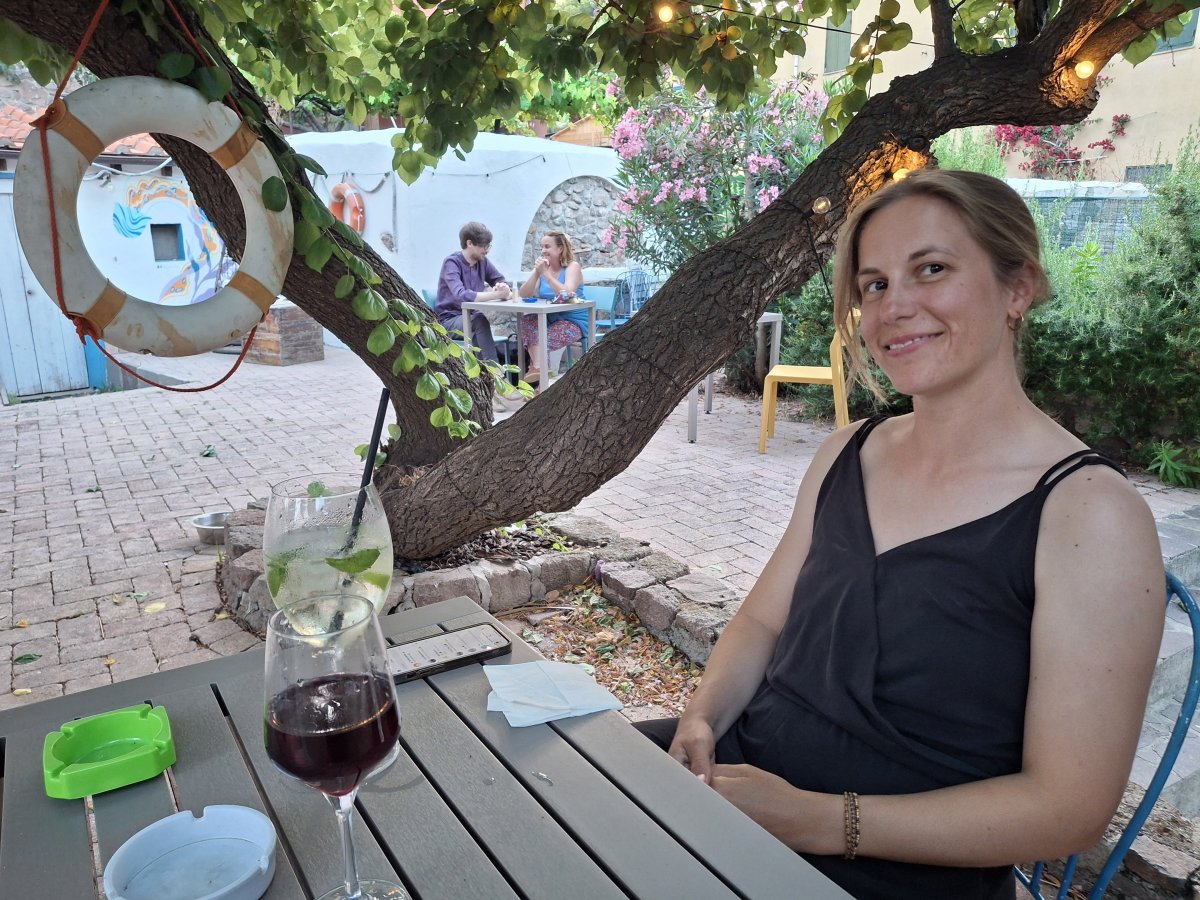 Abends ging es hoch ins Dorf. Zu fuss in 10-15min zu erreichen. Wer möchte kann aber auch den Bus nehmen. In einer kleinen, lokalen Bar gönnten wir uns einen feinen Burger – und erlebten eine Überraschung: Beim Bezahlen spendierte uns der Barkeeper einen speziellen Shot namens "Dito in Culo" (wortwörtlich „Finger im Po“) der aus einem dickflüssigen Alkohol und Absinth besteht. Der Ablauf: Finger in den Shot tauchen, anzünden (ja den Finger..), im Mund löschen, Shot trinken, Finger vor den Mund halten und Luft einsaugen. Der Heimweg danach war entsprechend lustig!