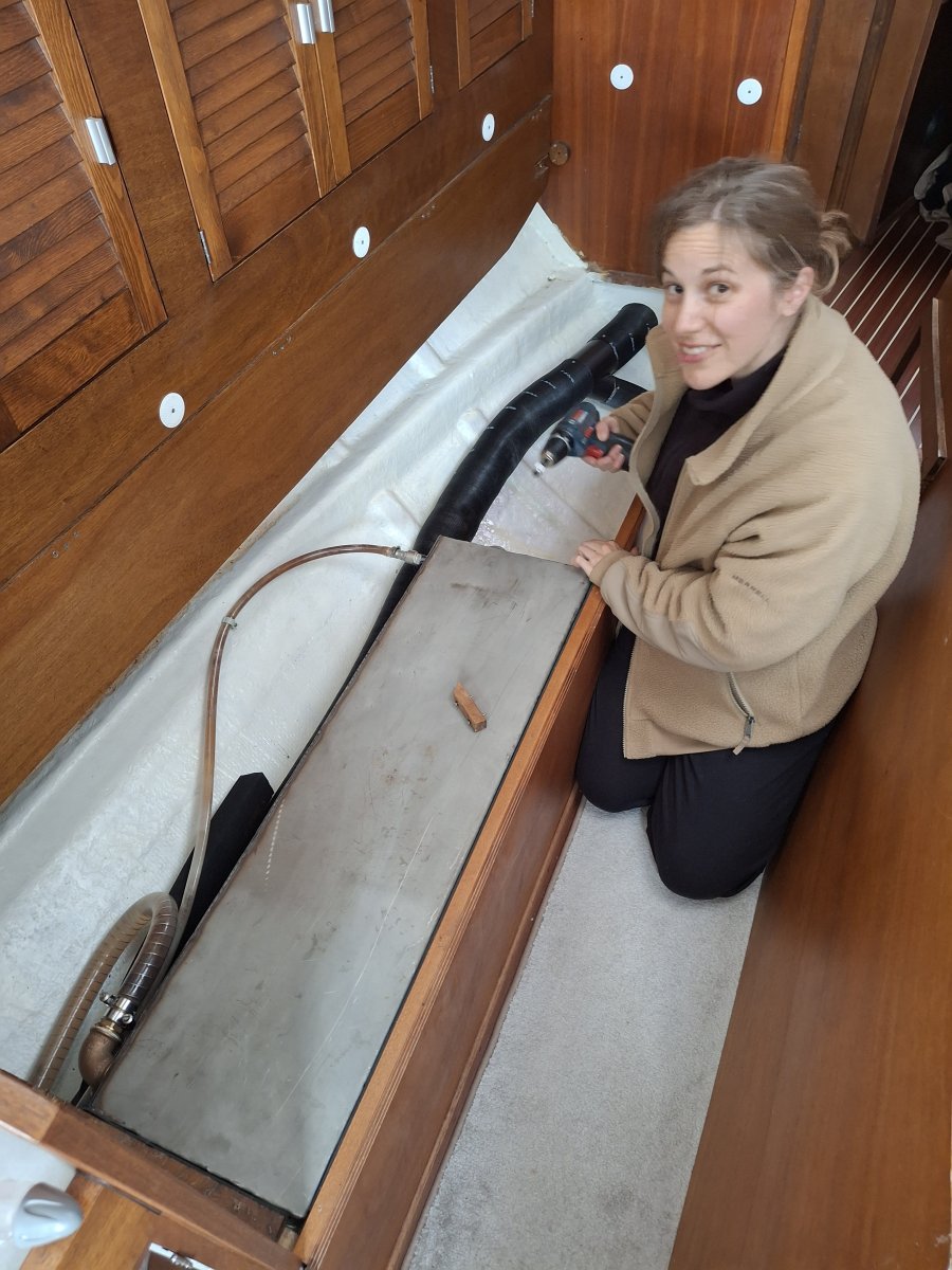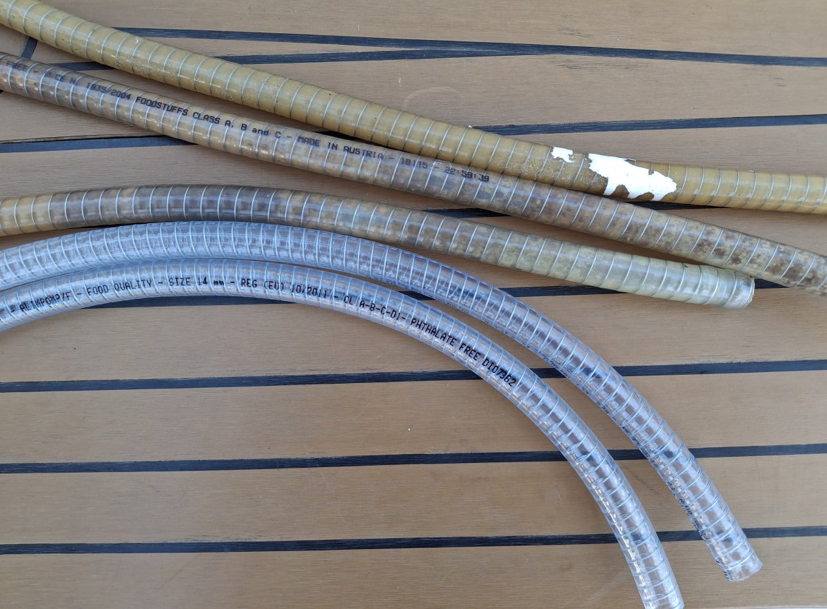 Wie letzte Woche bereits erwähnt war die Reinigung der Wassertanks nicht zufriedenstellend – also gingen wir das Ganze gründlich an: Beide Tanks wurden komplett ausgebaut und sorgfältig durchgespült. Dabei haben wir festgestellt, wie verdreckt die Wasserschläuche waren. Möglicherweise lagen hier auch die Rückstände des Reinigungsmittels.