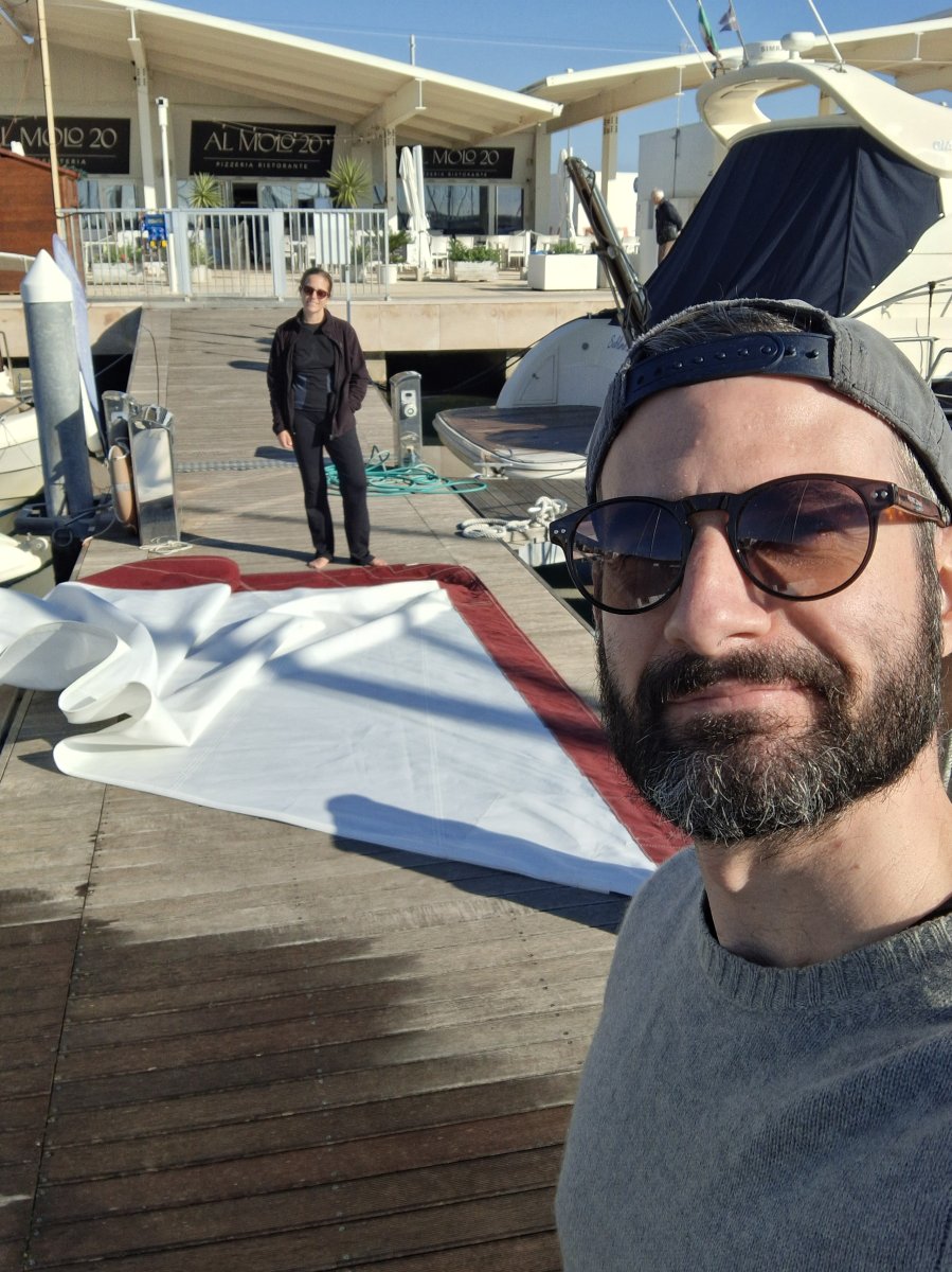 Wir konnten immerhin etwa vier Stunden schlafen, bevor wir sechs Minuten zu früh (!) – um 5:36 Uhr – in Foggia ankamen. Das Bahnhofscafé hatte bereits geöffnet. Also gab es einen Kaffee, ein Cornetto und einen Saft zum Frühstück. Unser Fahrer holte uns um halb acht ab, und schon bald waren wir wieder unterwegs Richtung Manfredonia – zurück zu unserer alten Lady.