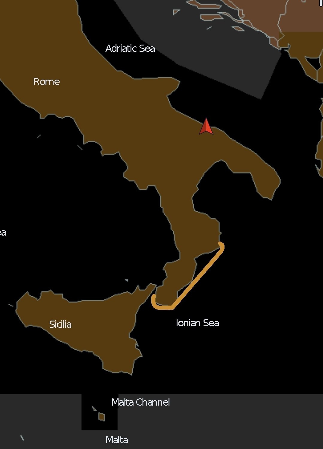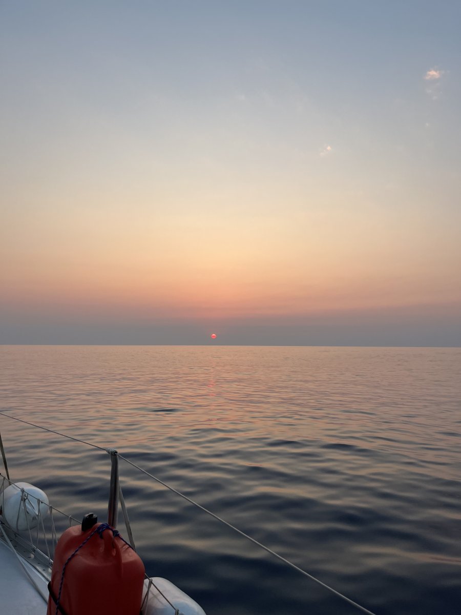 Am Mittwoch Morgen fegten kräftige Böen über den Hafen. Erst am Nachmittag liess der Wind nach und wir legten ab. Zunächst trug uns noch eine leichte Brise, doch bald flaute sie ganz ab – der Motor musste ran. Wir fuhren bewusst langsam, um heftigen Winden aus dem Osten Zeit zu geben, sich nach Westen zu bewegen bevor wir die Südspitze Kalabriens passierten. Die Wellen waren hoch, das Boot schaukelte unangenehm, und wir mussten uns erst an den unruhigen Rhythmus gewöhnen. In der Nacht beruhigte sich das Meer langsam, und wir fanden unseren Takt: kurze Schichten, ein paar Stunden Schlaf, abwechselnd Wache halten.