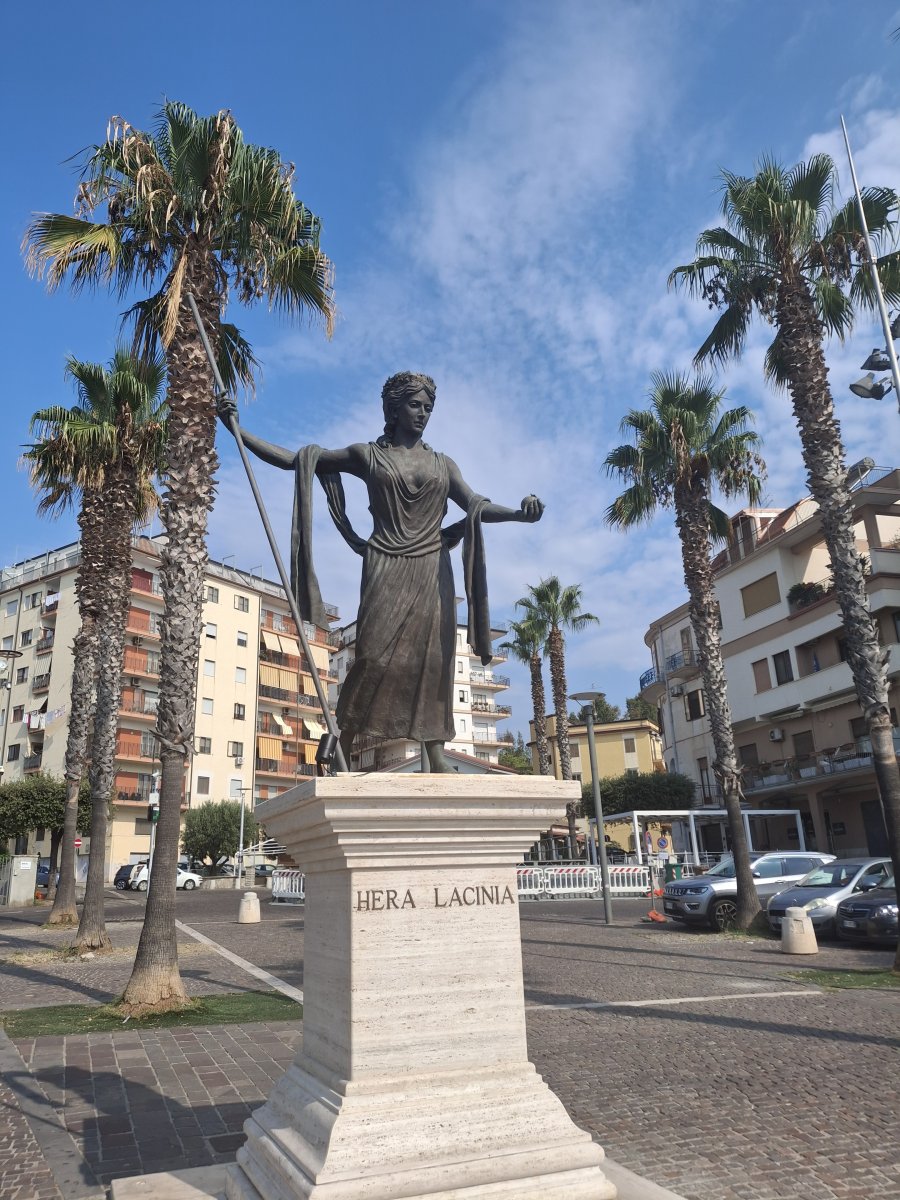 Die Strassen: leider auffallend schmutzig. Abends jedoch lebendig, voller Menschen und Ferienstimmung. Historisch ist Crotone bedeutend: Hier gründete der Mathematiker und Philosoph Pythagoras seine berühmte Schule. Überall begegnet uns der Name der Schutzgöttin der Seefahrer, Hera, die hier verehrt wurde. Der griechische Einfluss ist nach wie vor spürbar.