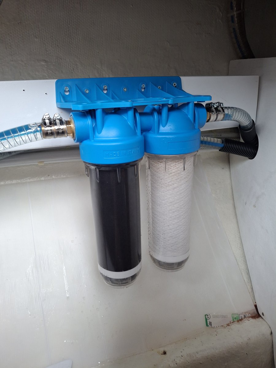An einem halbwegs trockenen Tag hat Jan die Wasserfilter umgebaut. Da die Filter nicht am höchsten Punkt sassen, hat sich Luft in den Schläuchen angesammelt — die auch nach dem Befüllen der Tanks nicht verschwand. Die Filter haben praktischerweise Entlüftungsschrauben, die nun auch zum Einsatz kommen können. Ausserdem konnten so die Kronenbohrer das erste Mal benutzt werden — Werkzeug will ja auch eingesetzt werden. Umbau erledigt — Problem gelöst. Ausnahmsweise mal ein kurzes Projekt.