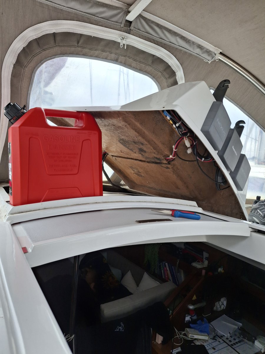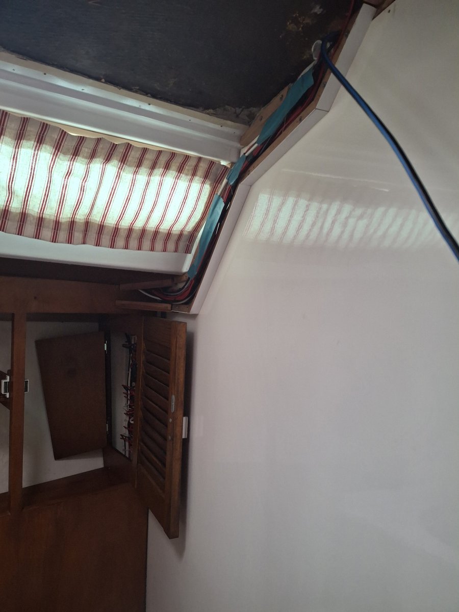Stromkabel mussten verlegt werden — zum Glück hatten wir am Schaltpanel noch einen ungenutzten Schalter. Der Stecker der VHF Antenne benötigte Zuwendung damit die Werte passten. Alleine um das 9 Meter lange Kabel zu verlegen, das als Datenverbindung vom AIS zum Kartenplotter dient — brauchten wir zu zweit einen halben Tag, mussten 123 Schrauben lösen, drei neue Löcher bohren, vier Deckenpaneele demontieren und drei Schränke ausräumen, ein richtiges Bootsprojekt deluxe.