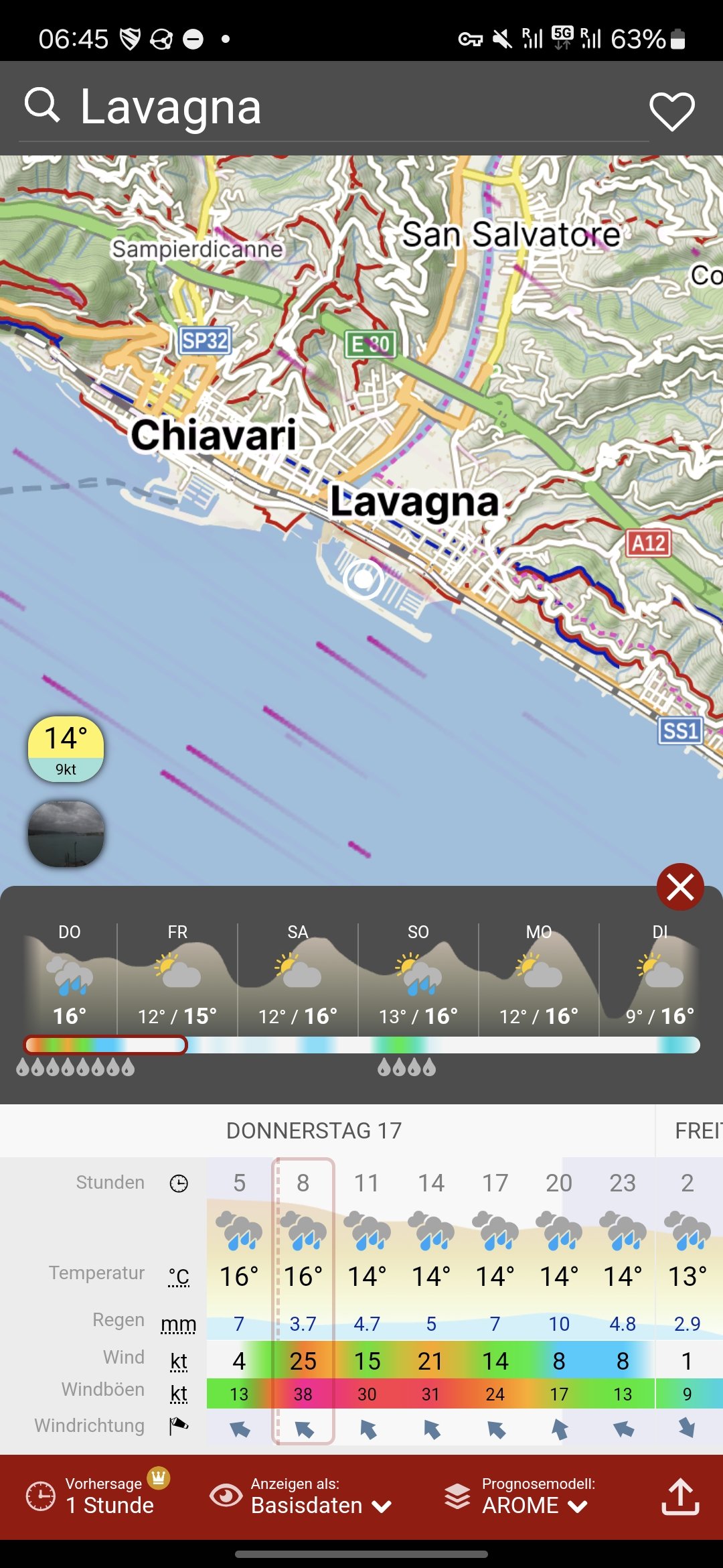 Der Regen blieb hartnäckig an unserer Seite – und dazu gesellten sich bald auch Sturmwarnungen auf dem Radar.