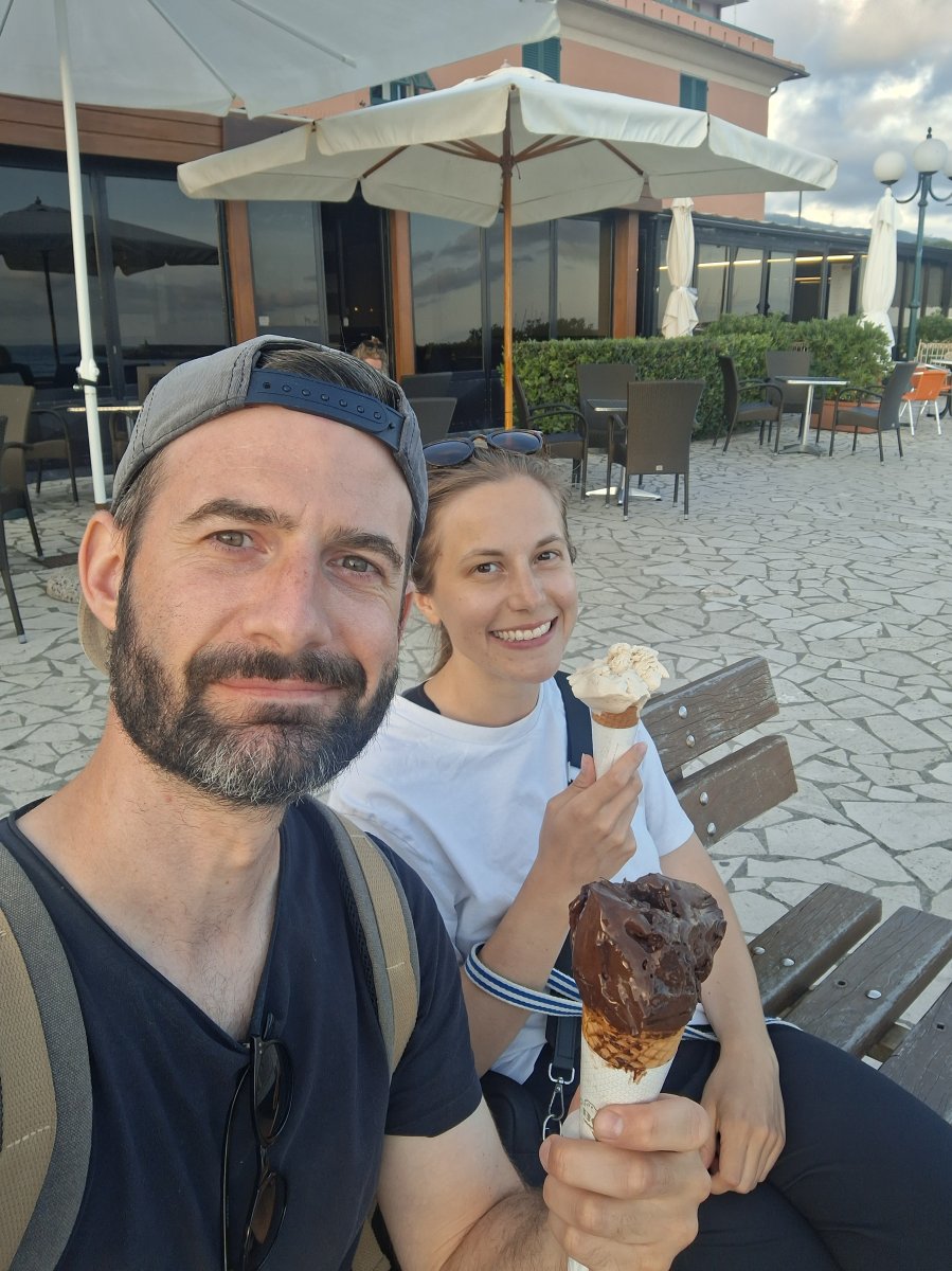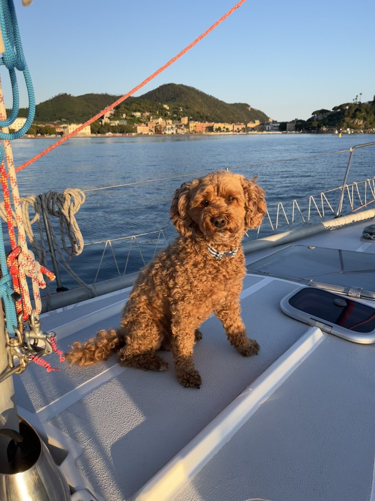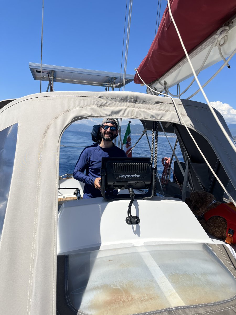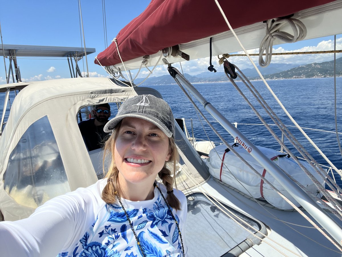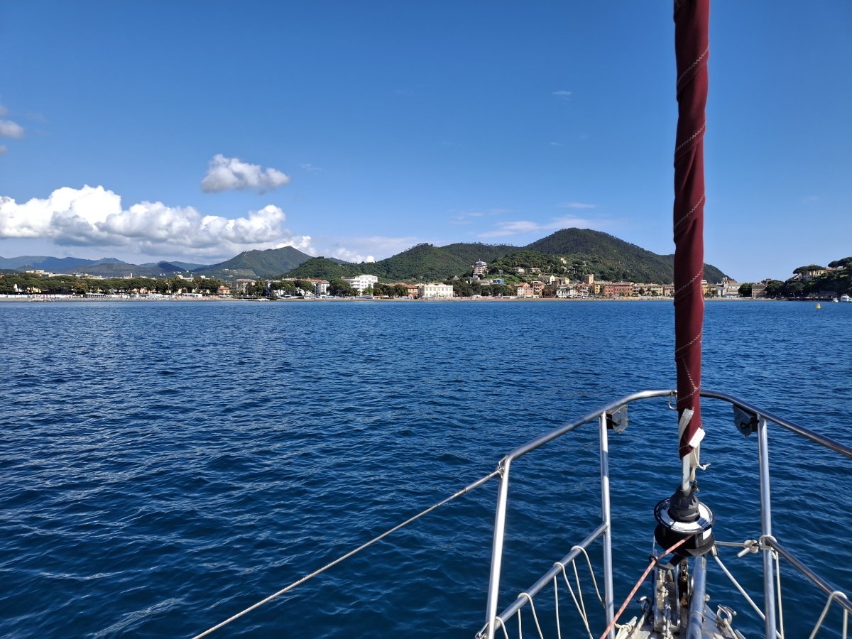 Unser erstes Ziel war die nächste Bucht: Sestri Levante. Auch wenn wir meist motoren mussten, war es aufregend – denn es war unser erstes Ankermanöver mit dieser Yacht. Das letzte Mal hatten wir das 2022 beim Skippertraining gemacht... ups!